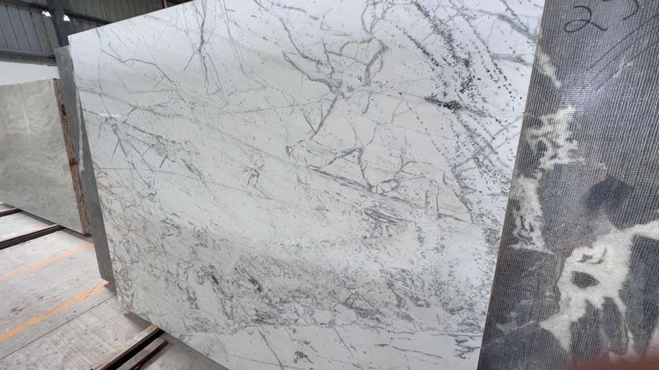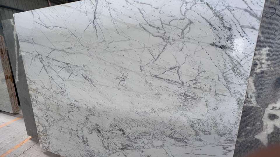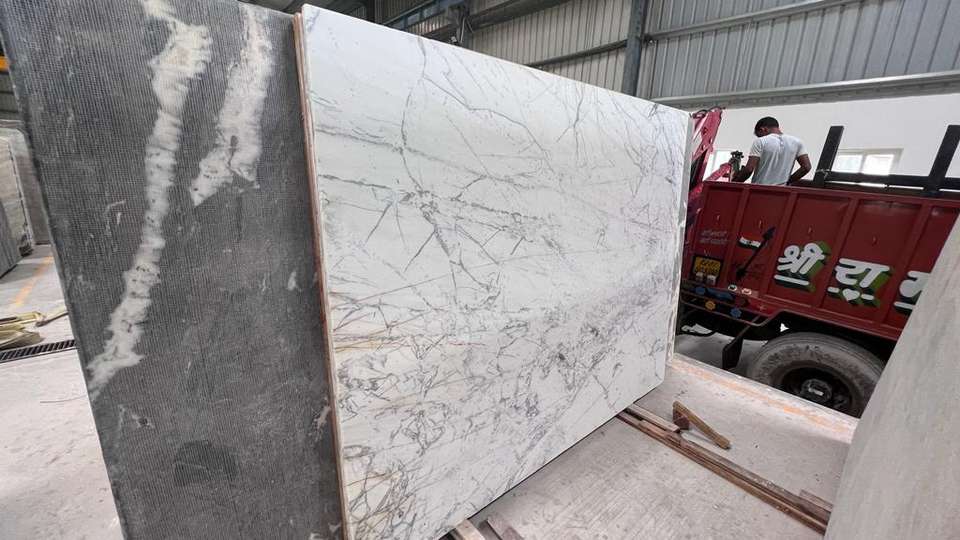 แผ่นหินอ่อนสีขาวเม็ดเล็กๆดีไซน์ทันสมัยหรูหราแผ่นพื้นสำหรับผนังธรรมชาติแผ่นใหญ่จากผู้ผลิตอินเดีย
