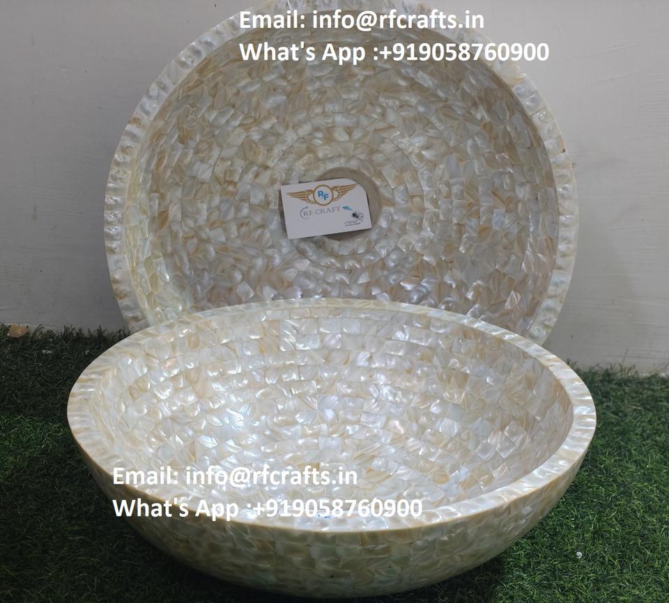 อ่างล้างหน้าเปลือกหอยมุกสีขาวและดำดีไซน์ทันสมัยหรูหราสำหรับตกแต่งบ้านจากอินเดียโดยงานฝีมือจาก RF