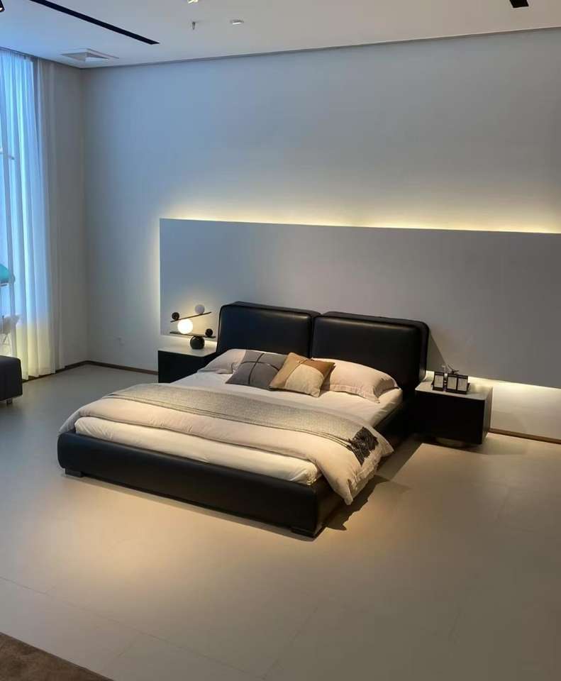 เตียงขนาดคิงไซส์สุดหรูทันสมัยพร้อมหัวเตียงหุ้มหนังนิ่มหุ้มเบาะไม้เนื้อแข็งจัดเก็บได้สะดวก-สำหรับโรงแรม