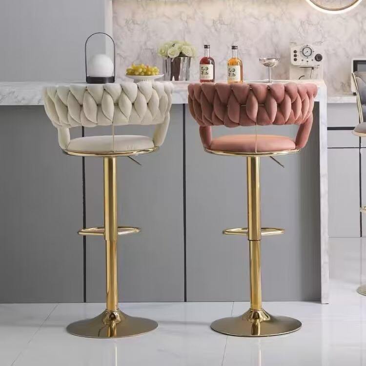 เก้าอี้บาร์สูงทนทานแบบหรูหราพร้อมกรอบโลหะทำจากผ้าหนังแท้สำหรับใช้ในบาร์ที่บ้านโรงแรมทานอาหาร