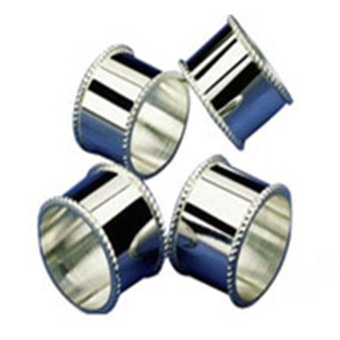 ชุดแหวนรัดผ้าเช็ดปากโลหะสีเงินขัดเงา ดีไซน์หรูหรา ทันสมัย เป็นมิตรกับสิ่งแวดล้อม ขอบประดับลูกปัด ผิวเงาเหมือนกระจก เหมาะสำหรับงานแต่งงาน โรงแรม งานเลี้ยง ตกแต่งโต๊ะ
