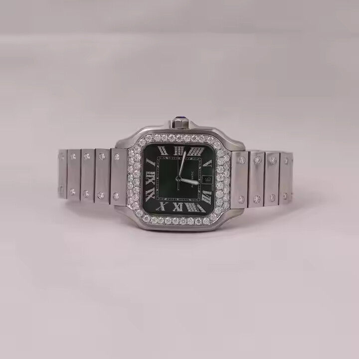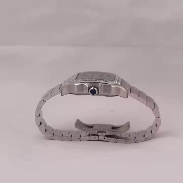 นาฬิกาเพชรสำหรับผู้ชายผู้หญิงหน้าปัดสี่เหลี่ยมสีดำสุดหรูดูหรูหราทันสมัย
