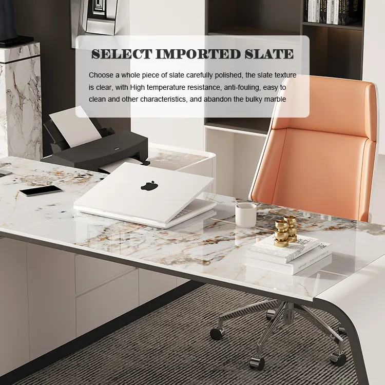 โต๊ะผู้บริหารทันสมัยหรูหราสำหรับผู้จัดการ/หัวหน้าโต๊ะทำจากไม้เซโอโต๊ะหินมีลิ้นชักเก็บของสำหรับเฟอร์นิเจอร์สำนักงาน