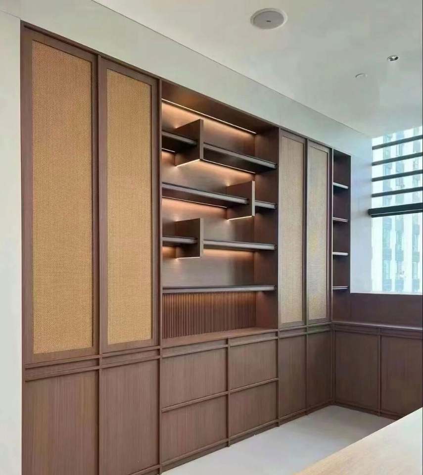 ตู้เก็บเอกสารไม้เฟอร์นิเจอร์ทันสมัยหรูหราตู้หนังสือเหนือศีรษะพร้อมตู้เก็บเอกสาร