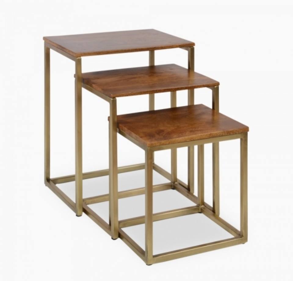 ชุดโต๊ะเฟอร์นิเจอร์3ชิ้นทันสมัยสุดหรูสำหรับห้องนั่งเล่นร้านอาหารโต๊ะซ้อนตกแต่งโต๊ะโลหะสีทองพร้อมท็อปไม้