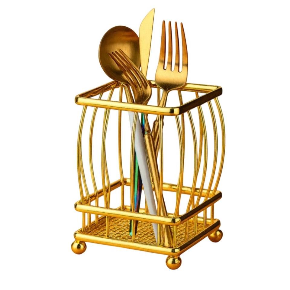 ที่ใส่ช้อนส้อมมีดโลหะสีทองหรูหราทันสมัย เป็นมิตรกับสิ่งแวดล้อม สำหรับจัดเก็บบนเคาน์เตอร์ครัว