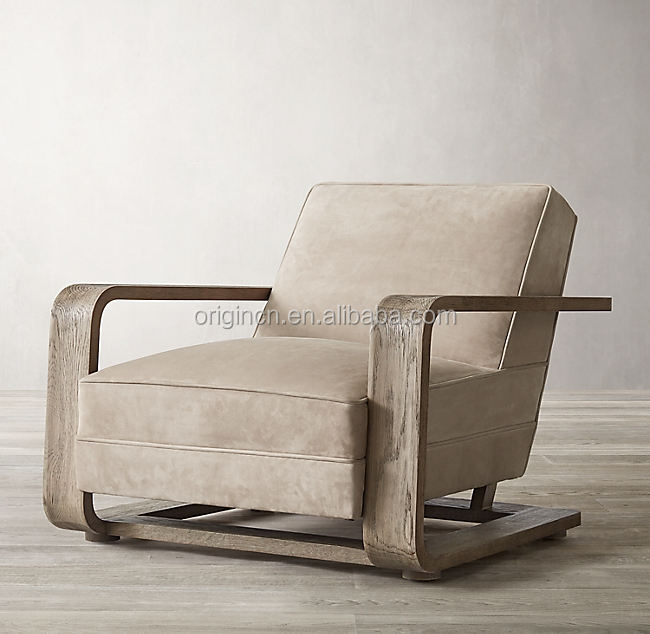 เฟอร์นิเจอร์ห้องนั่งเล่นสุดหรูทันสมัย ทำด้วยมือ โครงไม้โอ๊ค โซฟาหนังพักผ่อน