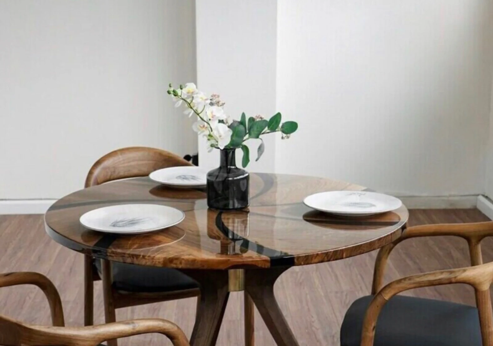 โต๊ะรับประทานอาหาร/กาแฟ ทำมือ ไม้กระถินเทศผสมเรซิ่น ดีไซน์หรูหราทันสมัย กันน้ำ เหมาะสำหรับห้องนั่งเล่น ของขวัญเกษียณอายุ งานแต่งงาน ครบรอบ งานไว้อาลัย