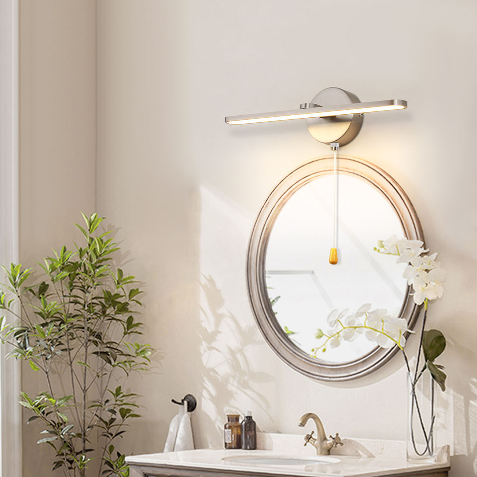โคมไฟติดผนัง LED สำหรับห้องนั่งเล่น ดีไซน์หรูหราทันสมัย โครงเหล็ก พร้อมสวิตช์แบบดึงสาย 8W มาตรฐาน IP44