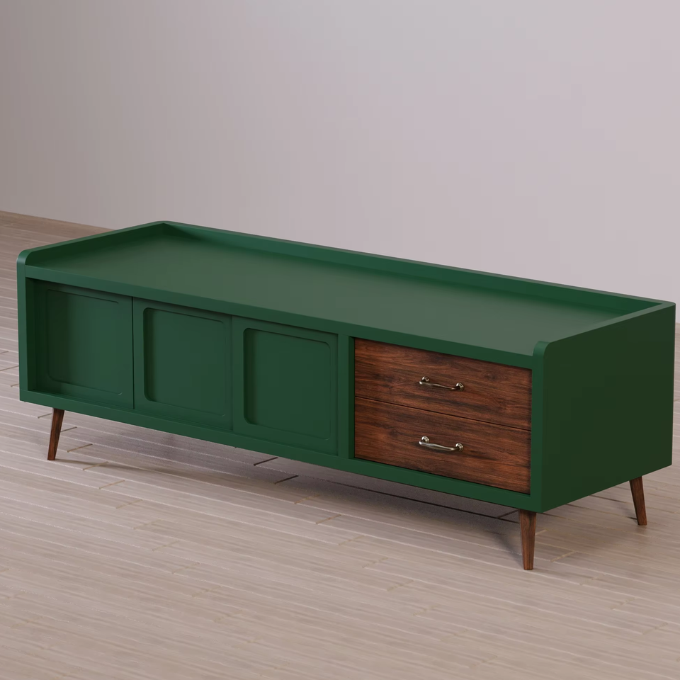 ขาตั้งทีวีและโต๊ะกาแฟไม้สักสีดำล้วนแบบเรียบง่ายทันสมัยหรูหราสำหรับห้องนั่งเล่นและห้องนอน