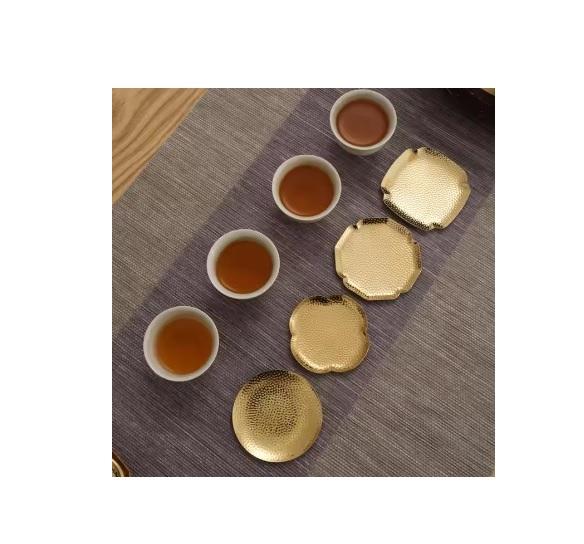 ถาดรองแก้วโลหะทองคำเปลวดีไซน์แฟนซีแบบใหม่หรูหราทันสมัย