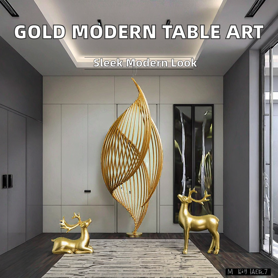 ของตกแต่งบ้านสไตล์นอร์ดิกหรูหราทันสมัย งานศิลปะโลหะลายพื้นเมือง ทาสีทอง สำหรับตกแต่งโต๊ะในห้องนั่งเล่น