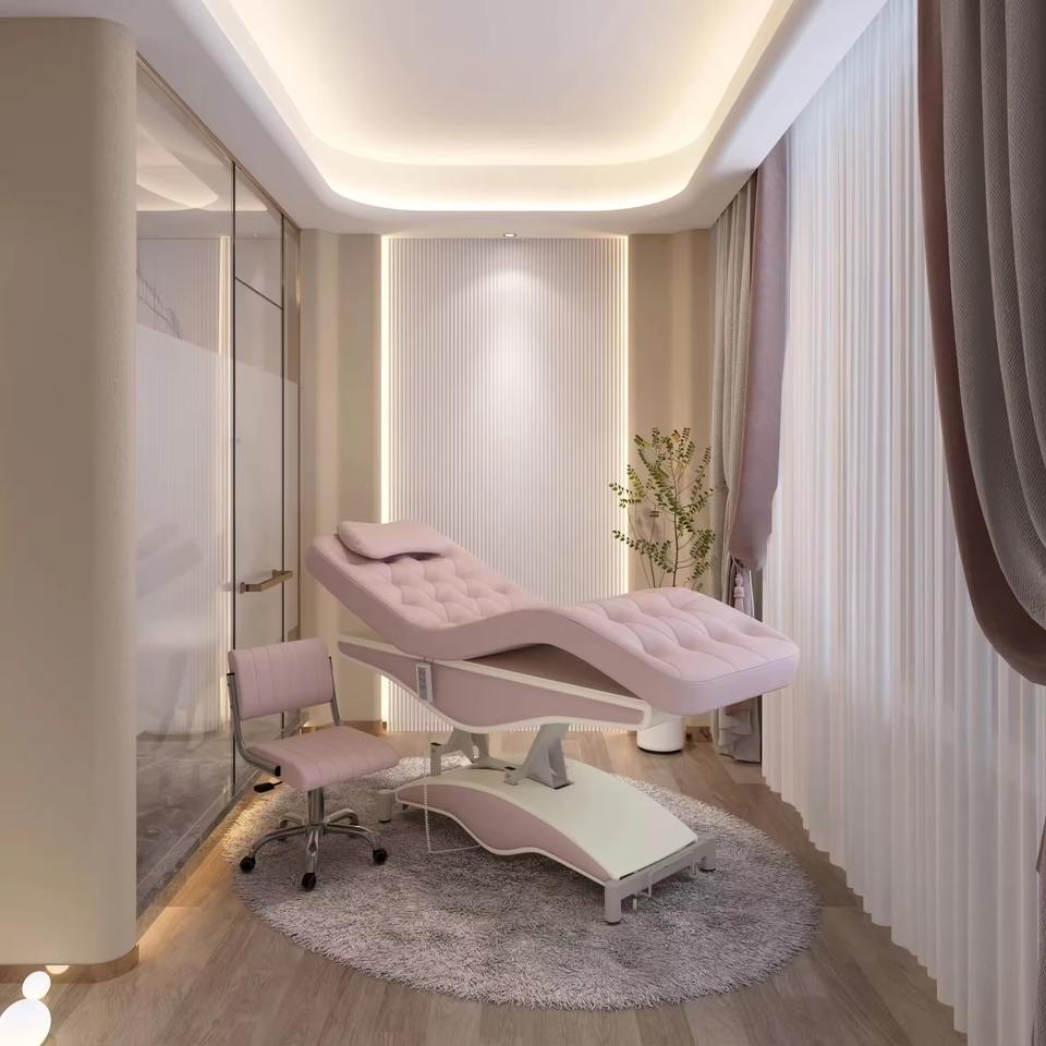 โต๊ะทำจากหนังพีวีซีสีชมพูสุดทันสมัยโต๊ะสำหรับร้านเสริมสวยแบบปรับได้4มอเตอร์สำหรับโรงแรมกลางแจ้งใช้ในการนวดเพื่อความงามบำบัด