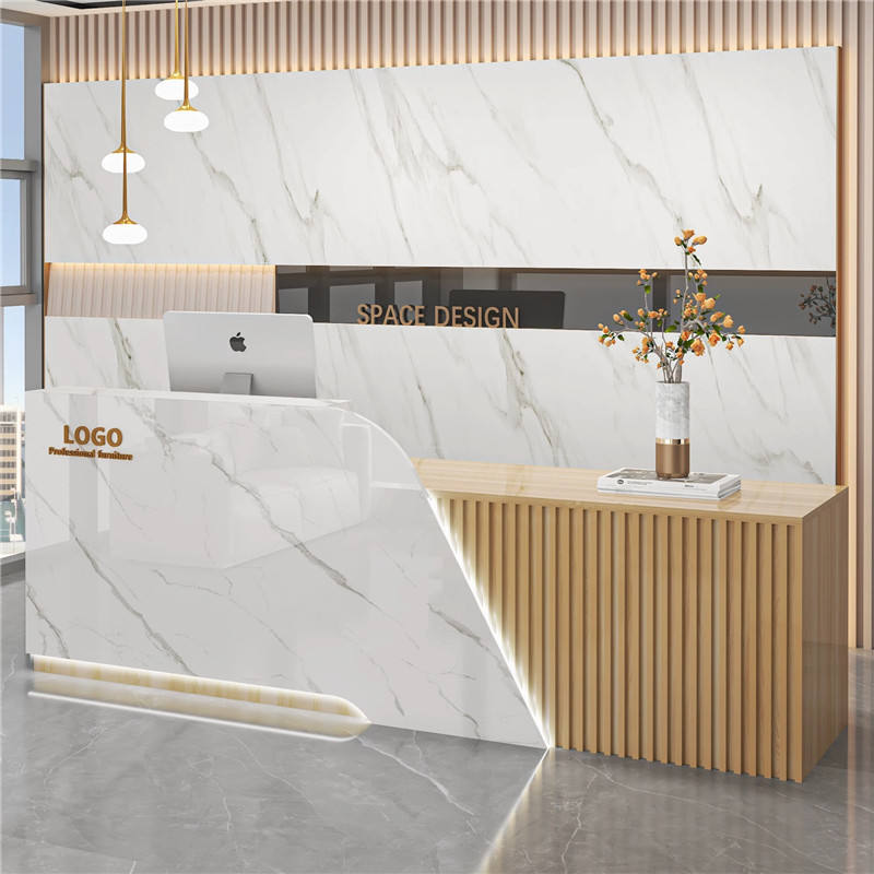 แผนกต้อนรับส่วนหน้าที่ทันสมัยหรูหราสำหรับโรงพยาบาลสำนักงานโรงแรม-วัสดุที่กำหนดเองและเฟอร์นิเจอร์เชิงพาณิชย์ที่ทนทาน