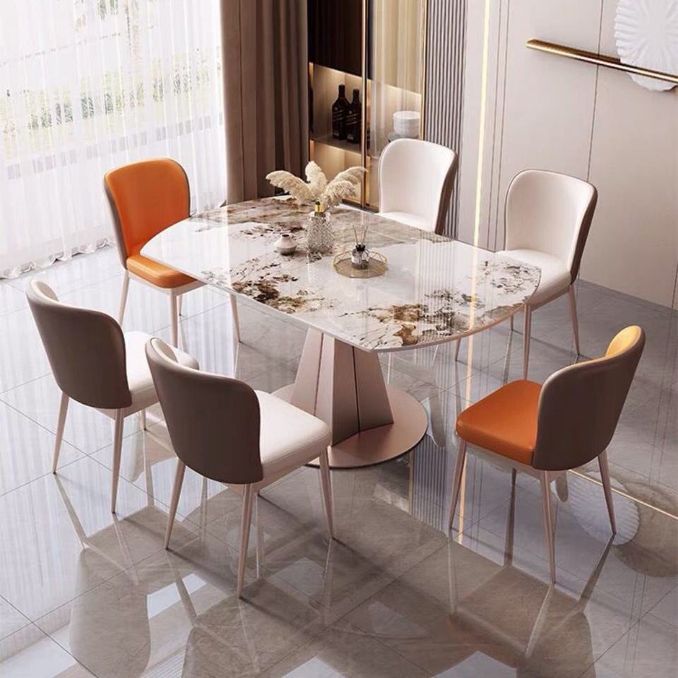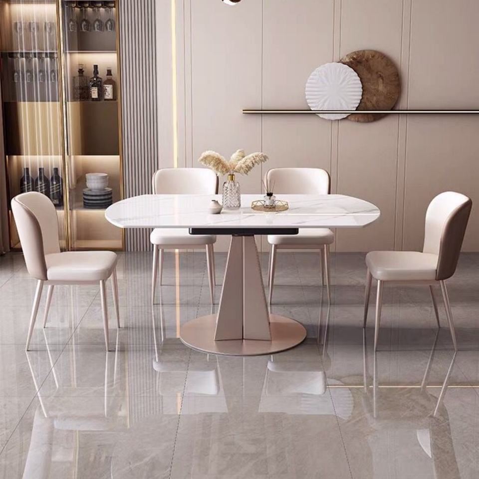 ชุดโต๊ะอาหารหินชนวนทรงกลมแบบพับได้ ขยายได้ ดีไซน์หรูหรา ทันสมัย เรียบง่าย เหมาะสำหรับโรงแรมและบ้าน พร้อมเก้าอี้ 6 ตัว