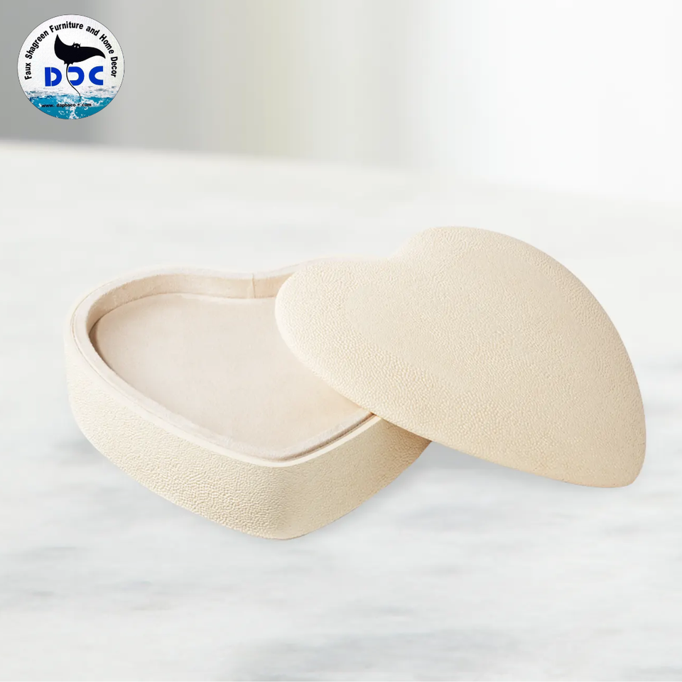 กล่องเก็บเครื่องประดับรูปหัวใจ DPC Luxury Modern Slyte แบบกำหนดเอง หุ้มกำมะหยี่ลายหนังแกะเทียม พร้อมตัวล็อคทองเหลือง สีครีม รุ่น 0006