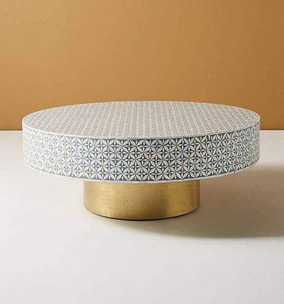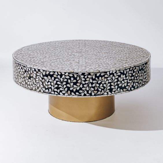 Luxury Modern Solid Wood Coffee Table Bone Mother Pearl Inlay Adjustable Height Multi-Purpose Living Room Kitchen Furniture