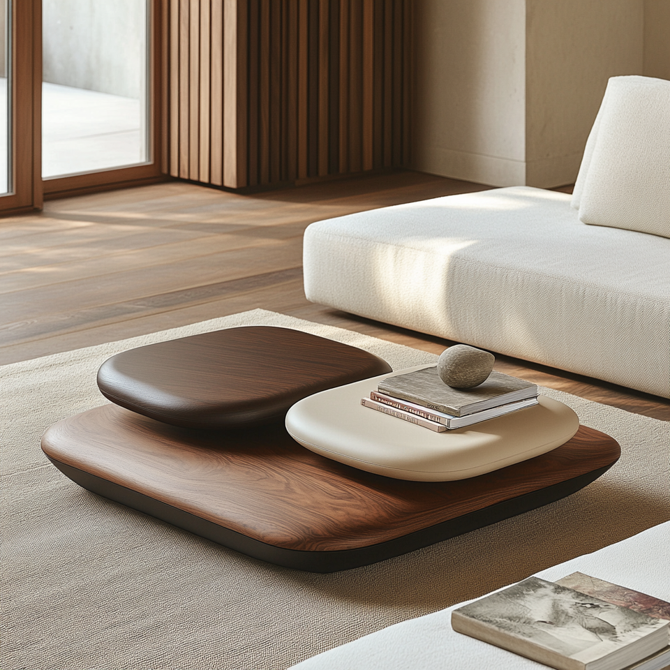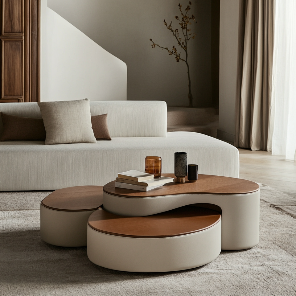โต๊ะกาแฟไม้เนื้อแข็งหรูหราทันสมัยรูปทรงพิเศษเฟอร์นิเจอร์ห้องนั่งเล่นปรับความสูงได้