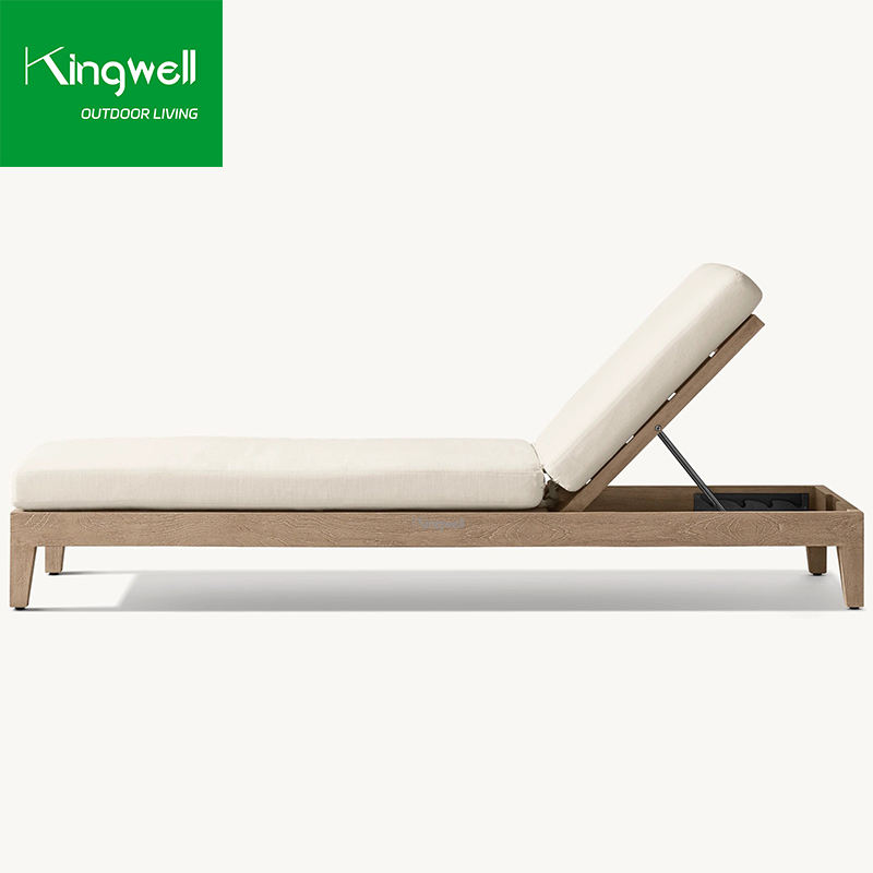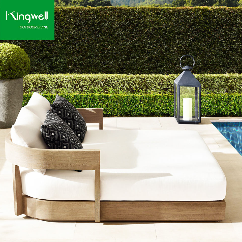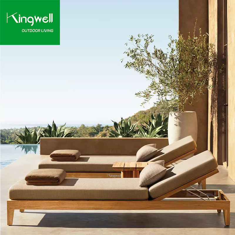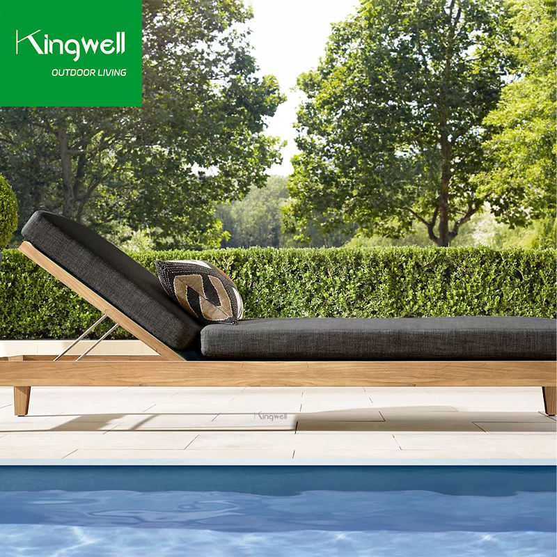เตียงอาบแดดทรงสี่เหลี่ยมหรูหราทันสมัย ทำจากไม้สัก สำหรับใช้กลางแจ้ง โรงแรม สระว่ายน้ำ ลานบ้าน สวนสาธารณะ พร้อมเบาะรองนั่งกันรังสียูวี