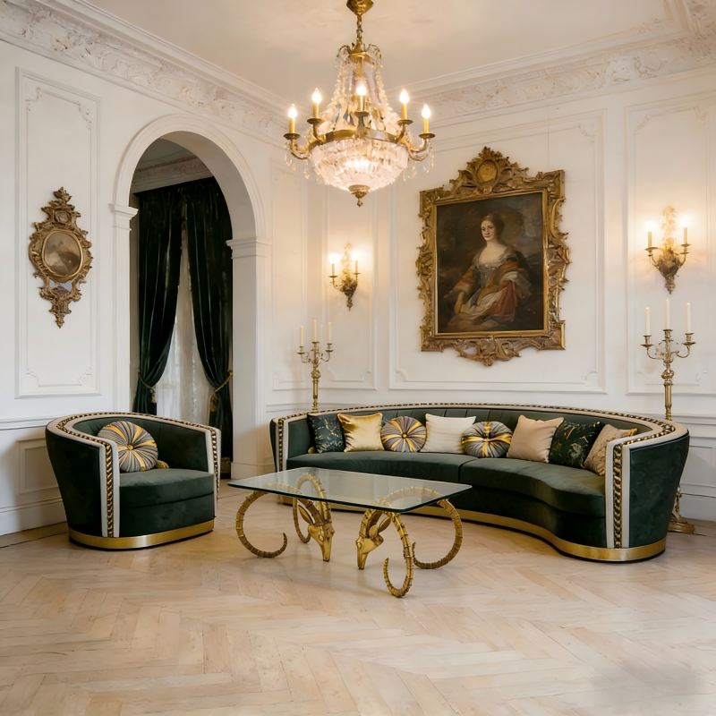 โซฟาห้องนั่งเล่นสไตล์ดีไซเนอร์ หรูหราแบบเบาๆ แนวเรโทรฝรั่งเศส ทรงโค้ง
