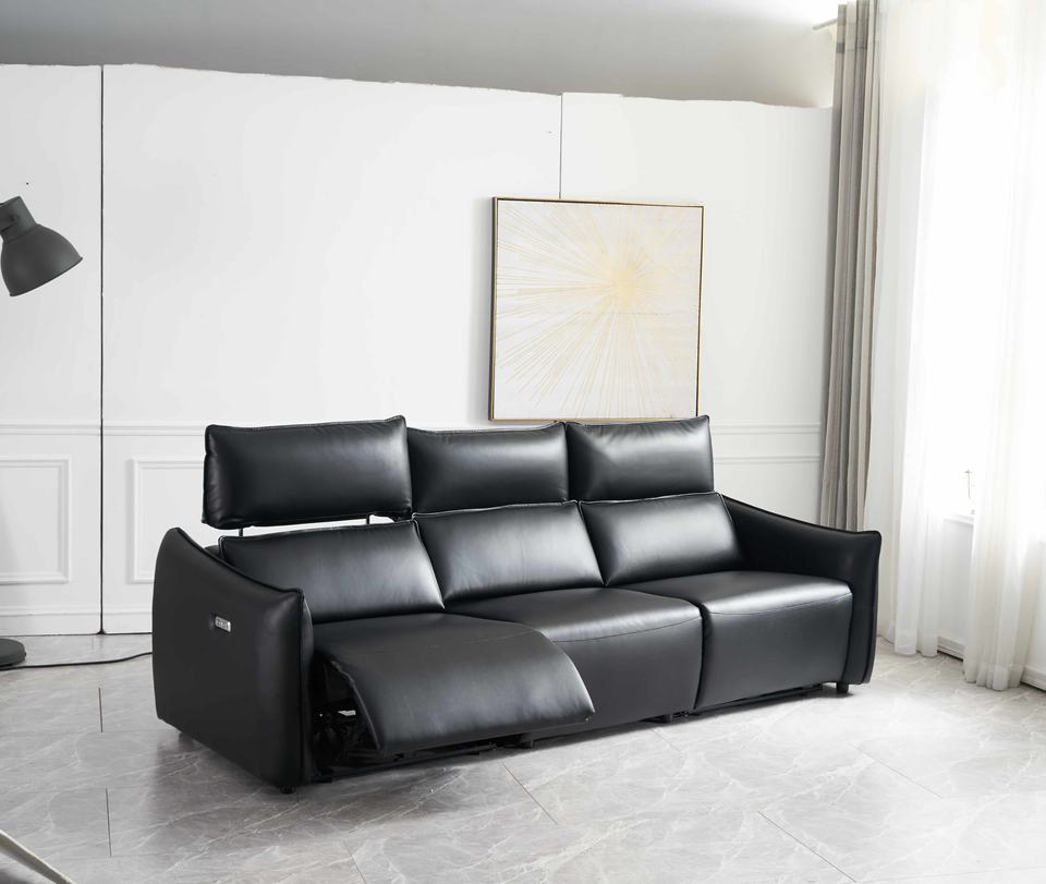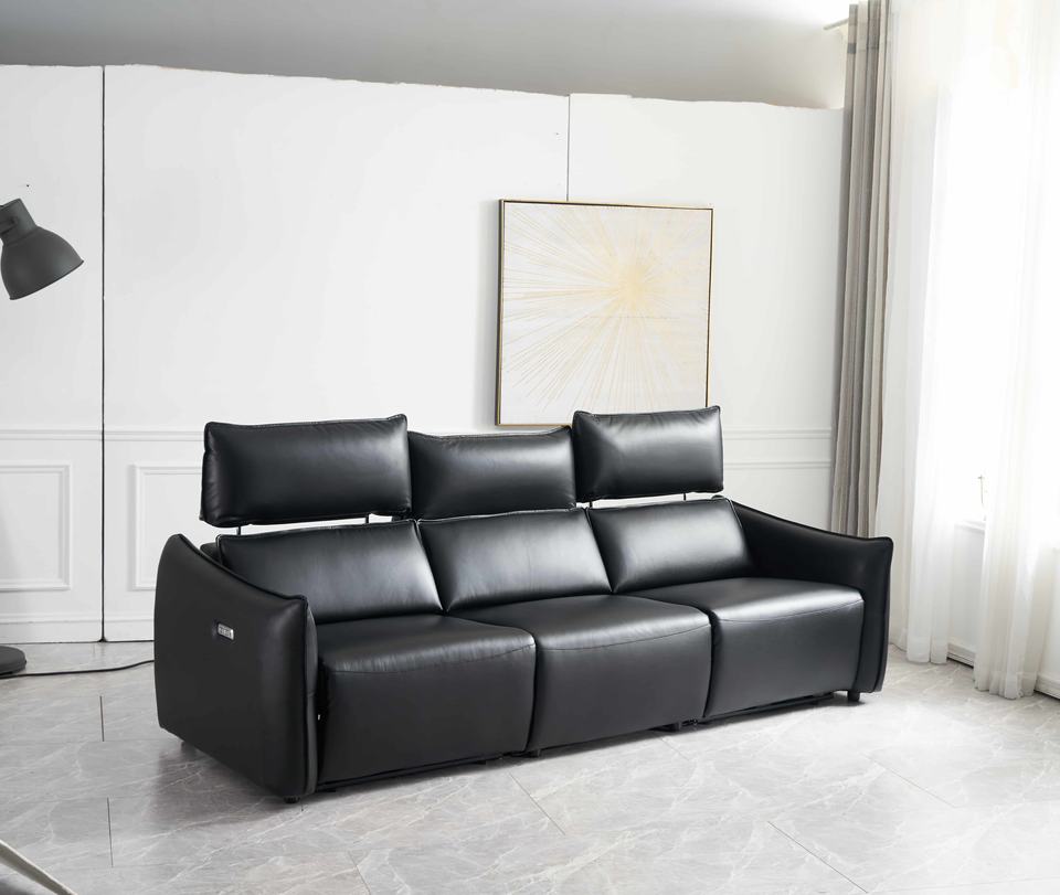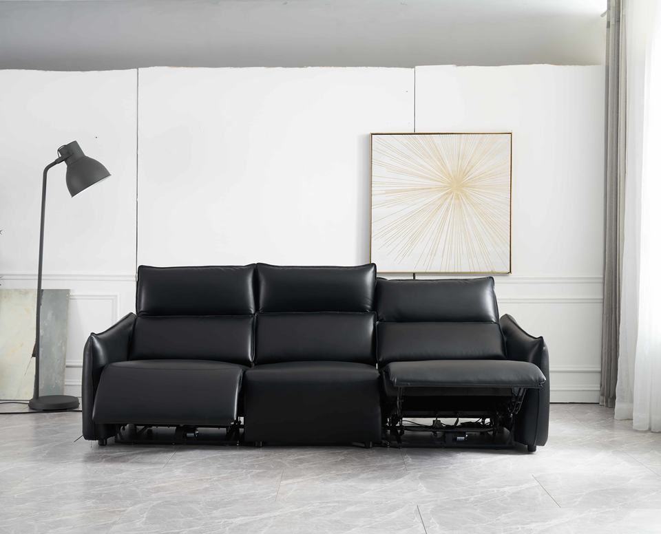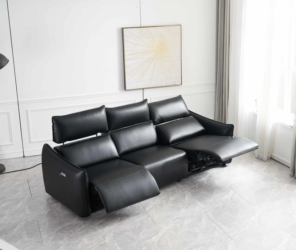 โซฟาปรับเอนสามที่นั่งแบบโมเดิร์นสุดหรูหุ้มด้วยหนังแท้ พร้อมฟังก์ชั่นนวดและระบบทำความเย็นแบบปรับไฟฟ้า