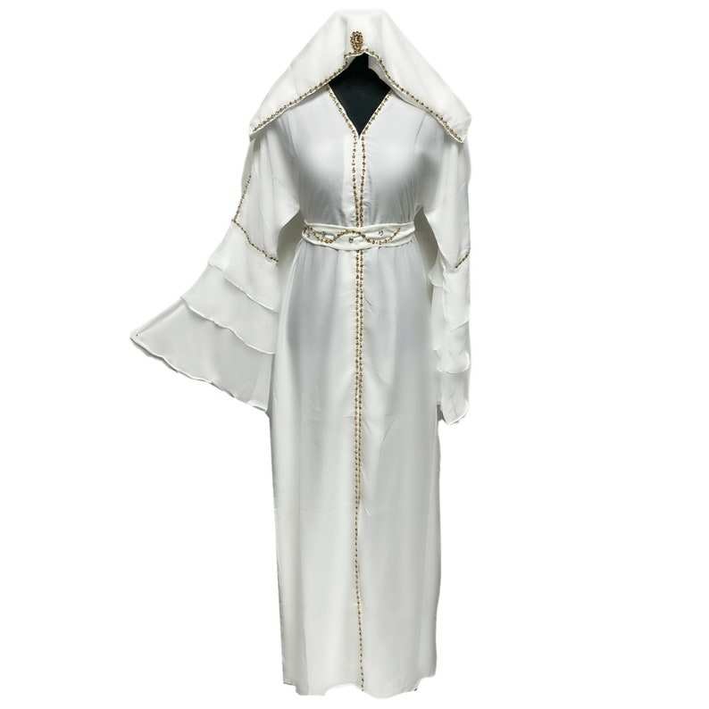 ชุดอาบายะห์ผ้าซาตินหรูหราสำหรับผู้หญิง สไตล์ฟาราชา จาลาบียะห์ ชุดเดรสแบบอาหรับสำหรับงานปาร์ตี้ ความยาวระดับพื้น เอวธรรมชาติ คอสูง ผ้ากันยับ