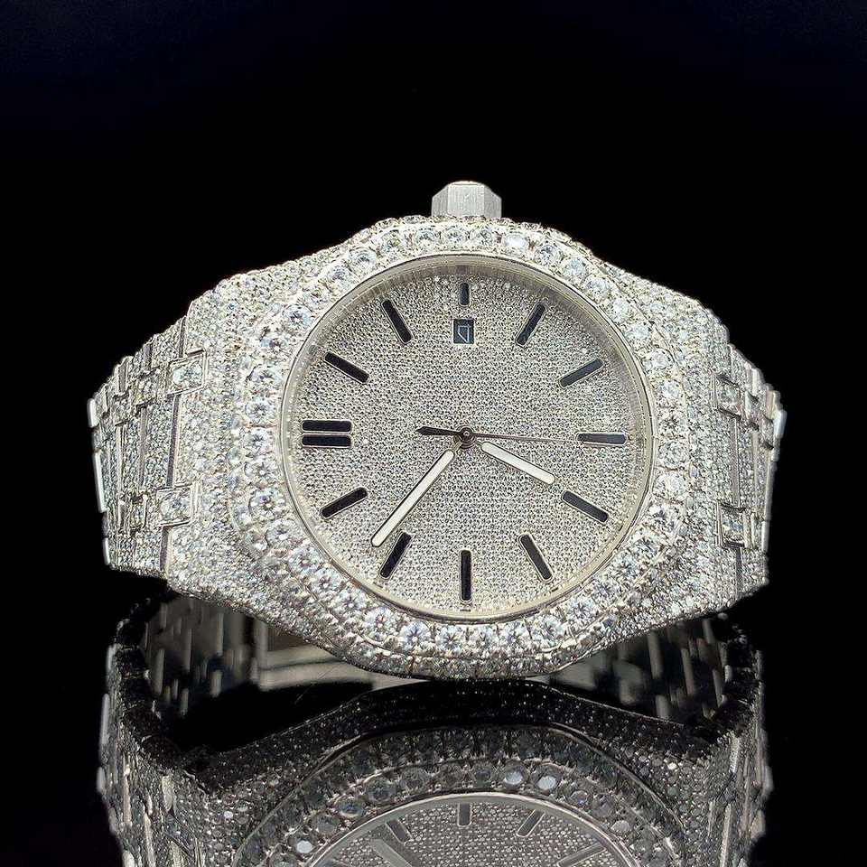 นาฬิกาข้อมือผู้ชายทรงสี่เหลี่ยม สแตนเลสสตีล ระบบควอตซ์ ประดับเพชรโมอิสซาไนต์หรูหรา หน้าปัดอนาล็อก กระจกหนา 5 มม. สไตล์ฮิปฮอป สำหรับนักธุรกิจ