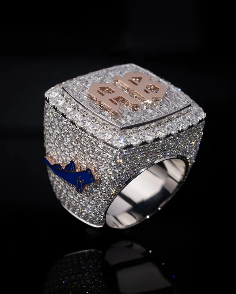 แหวนอักษรย่อ AB ประดับเพชรโมอิสซาไนต์สุดหรู ทรงบาแกตต์และทรงกลม สองสี สไตล์ฮิปฮอป ประดับเพชรเต็มวง