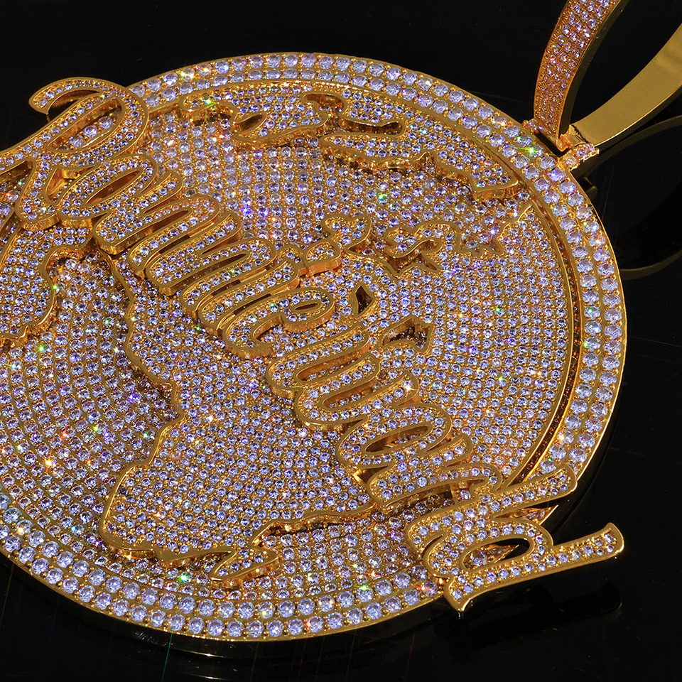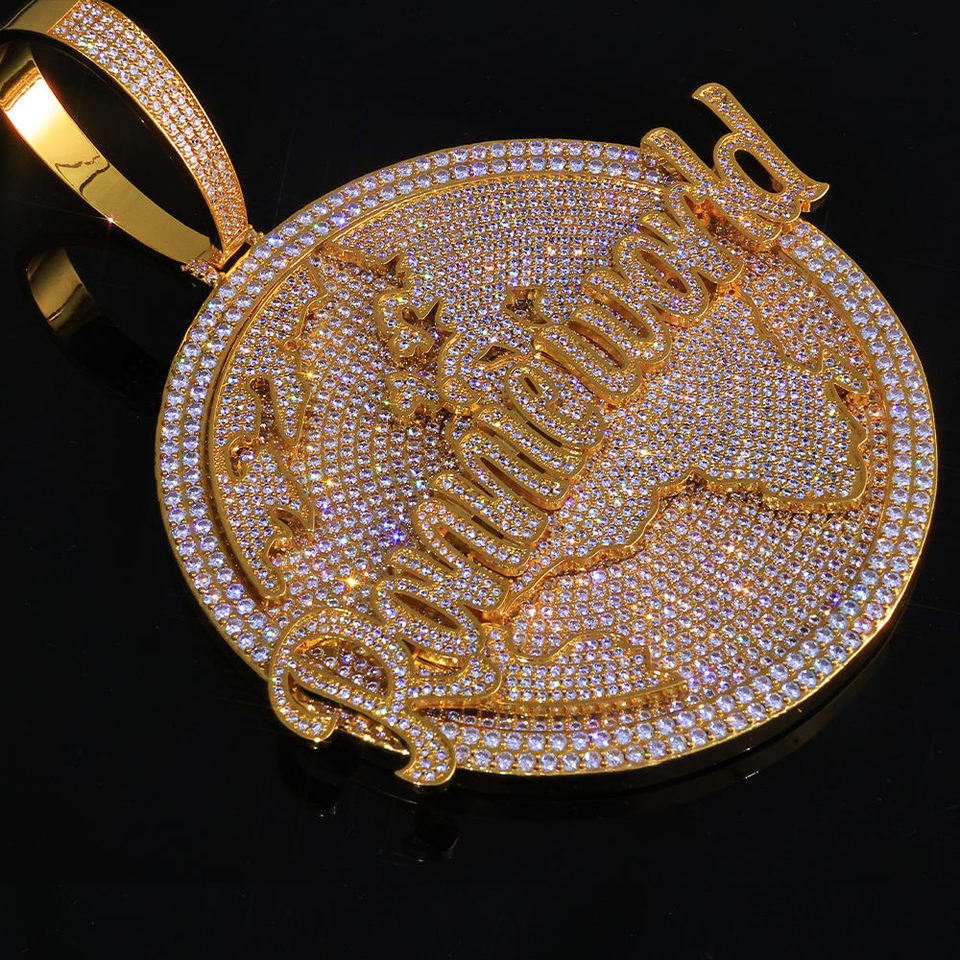 จี้รูปแผนที่โลกประดับเพชรโมอิสซาไนต์สุดหรู สีทอง สไตล์ฮิปฮอป สร้อยคอแบบมีจี้พร้อมสลักชื่อได้ตามต้องการ
