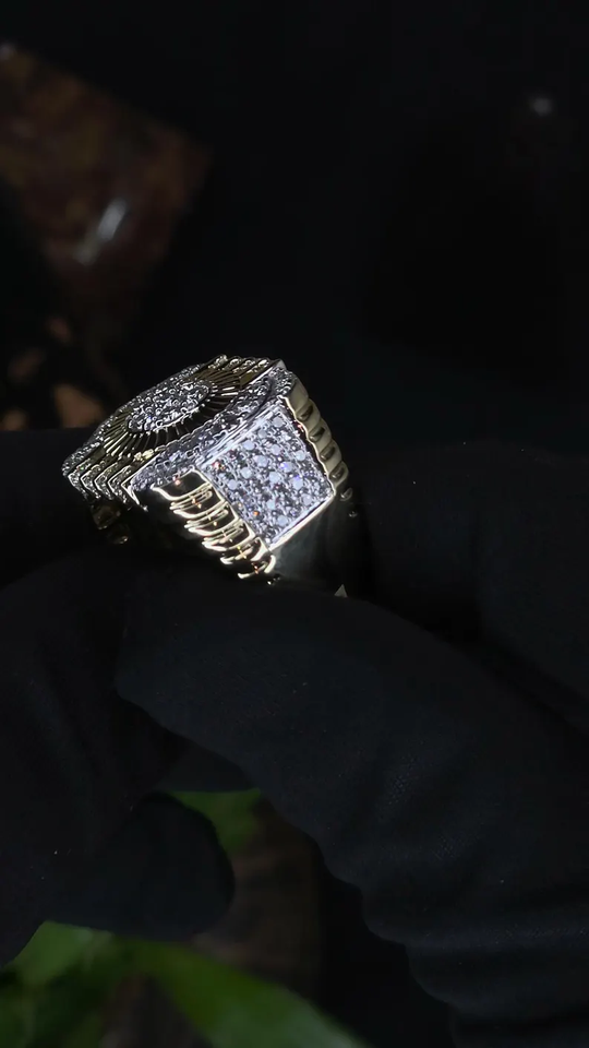 แหวนฮิปฮอปทรงกลมประดับโมอิสซาไนต์หรูหรา ชุบโรเดียม เงินแท้ 925 สำหรับผู้ชาย
