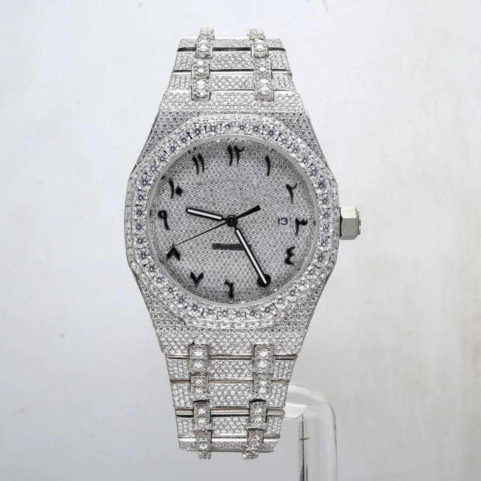 นาฬิกาข้อมือสแตนเลสสตีลหรูหราประดับโมอิสซาไนต์ ตัวเลขแบบอารบิก ระบบอัตโนมัติ รุ่นลิมิเต็ดอิดิชั่น สไตล์ฮิปฮอป แฟชั่นหรูสำหรับผู้ชาย