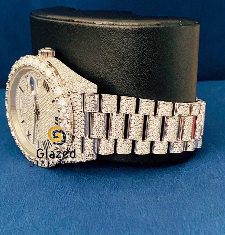 นาฬิกาเพชรมอยส์ซอไนท์สุดหรูทำด้วยเพชรตัดละเอียดเหมาะสำหรับผู้ชายดูมีระดับในงานปาร์ตี้