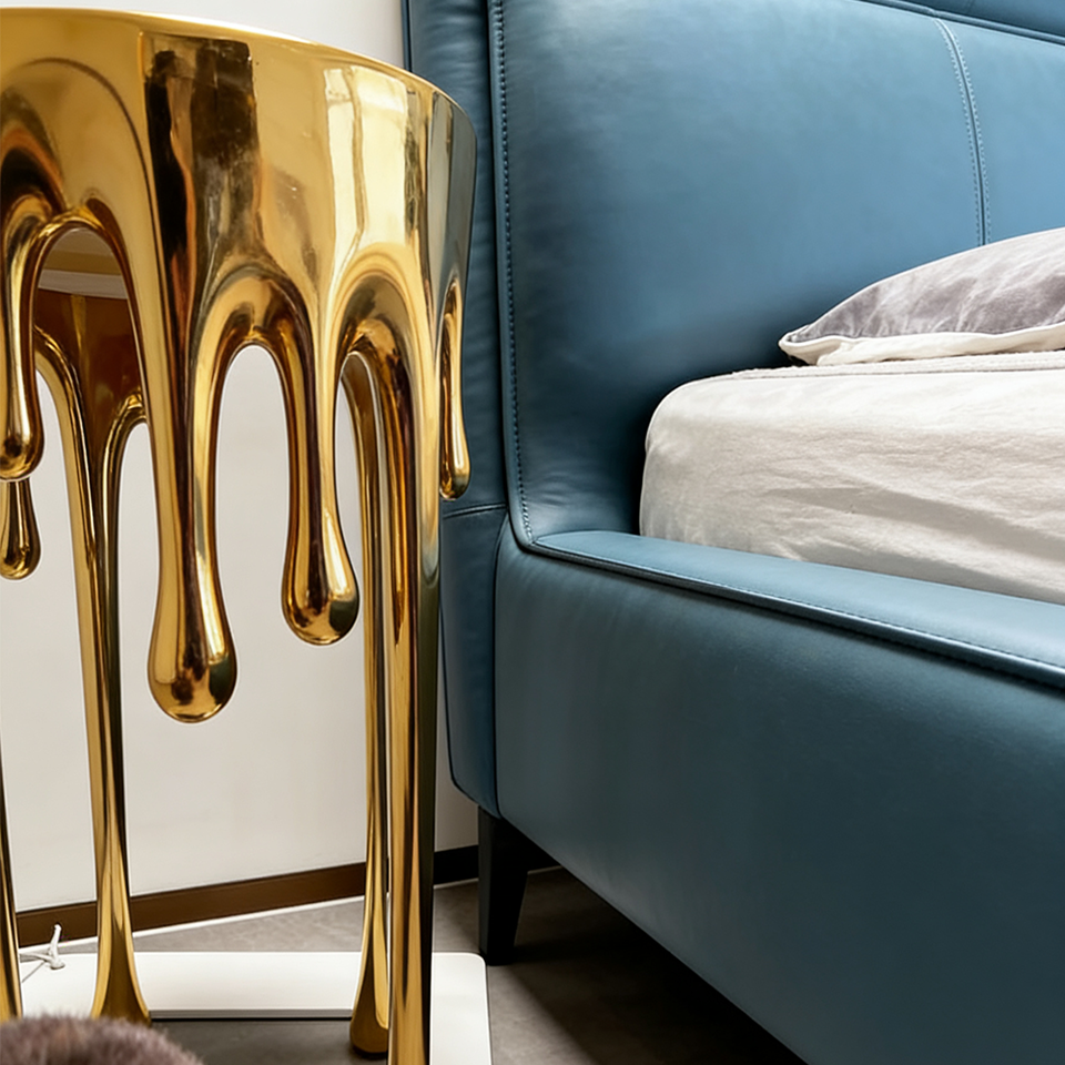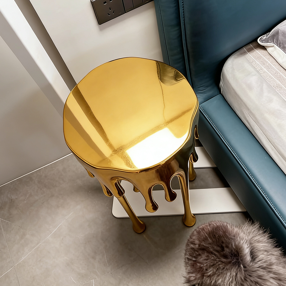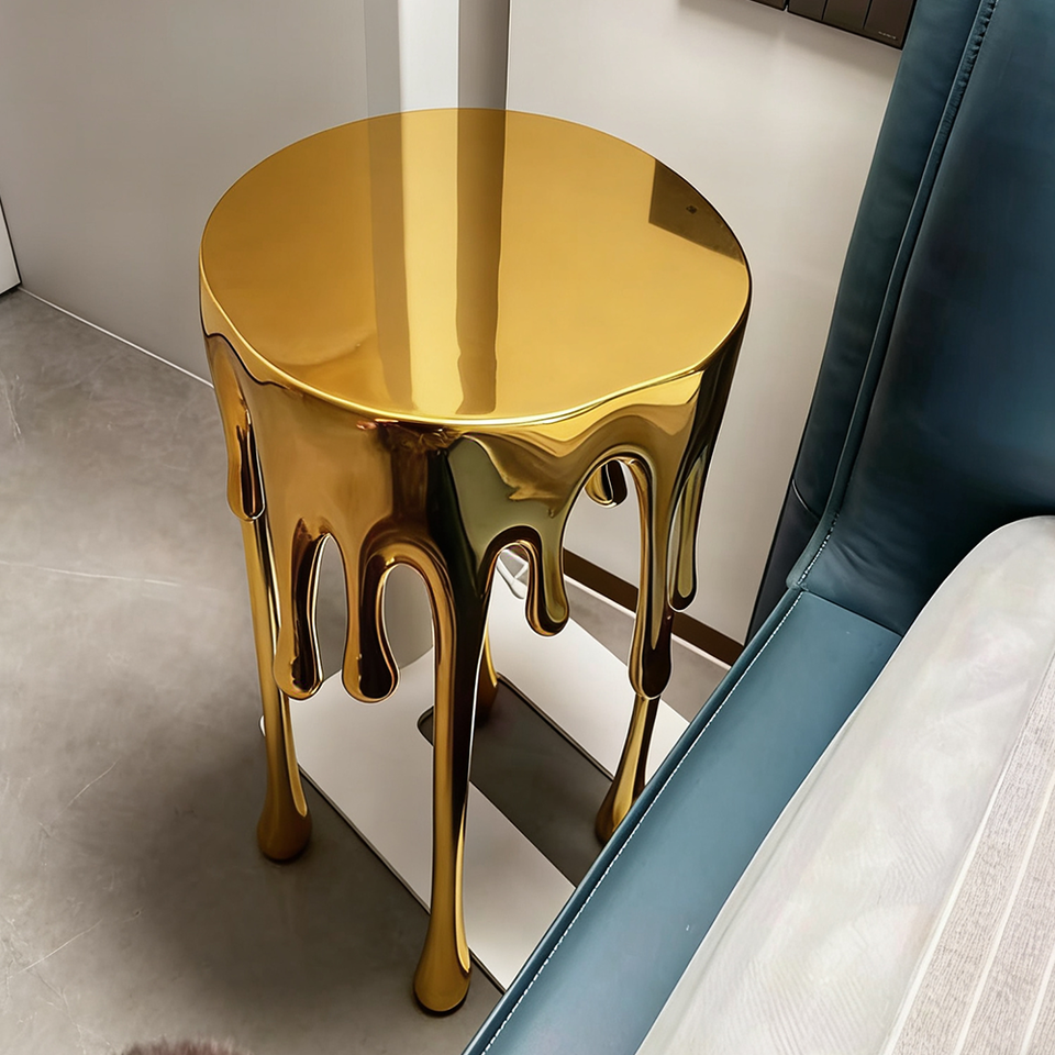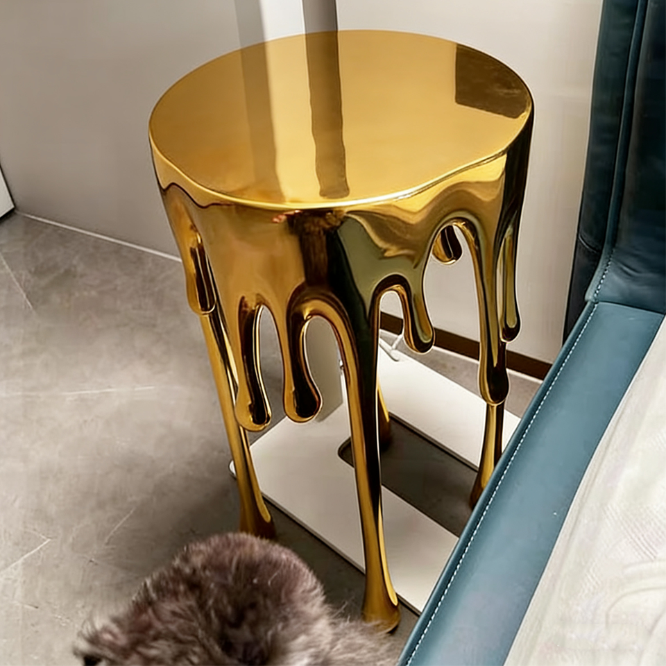 โต๊ะข้างเตียงทองเหลืองหลอมรูปทรงแปลกตา ฐานโลหะเรซิ่น ดีไซน์หรูหรา ตกแต่งห้องนั่งเล่น เฟอร์นิเจอร์เสริมสไตล์แกลเลอรี