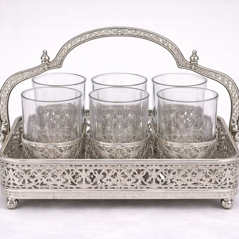 ชุดน้ำชาโมร็อกโก6แก้วสุดหรูพร้อมที่ใส่โลหะสีทอง JM JM-3009ระหว่างประเทศ