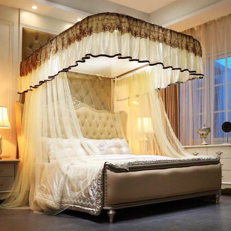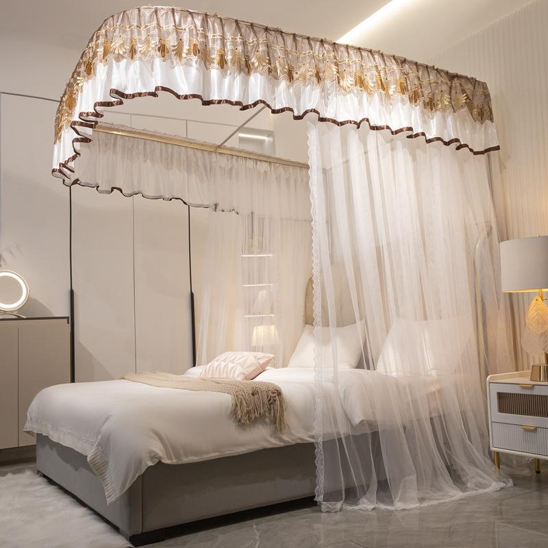 มุ้งกันยุงลูกไม้กันยุงเตียงคู่ในร่มทำจากโพลีเอสเตอร์100% รูปตัวยูหรูหรา