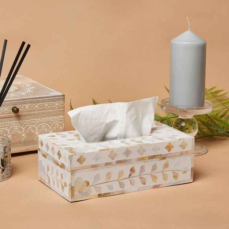 แม่ของไข่มุกกล่องกระดาษทิชชูแบบฝังลายดอกไม้งานออกแบบทำมือ