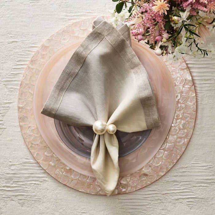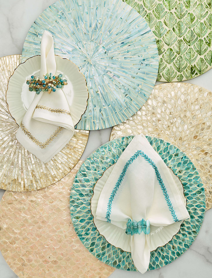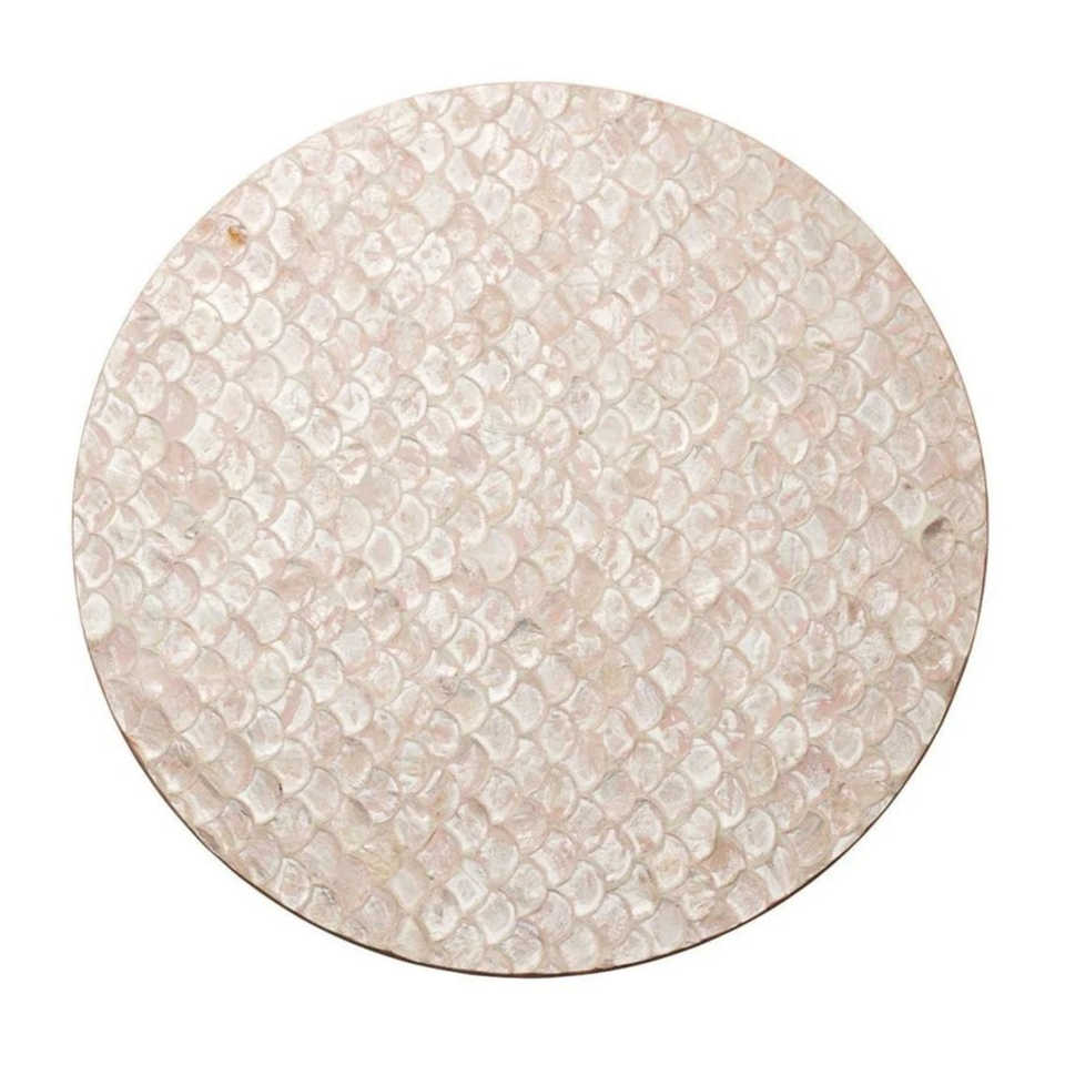 แผ่นรองจานทรงกลมลายเปลือกหอยมุกหรูหราทำด้วยมือสำหรับตกแต่งบ้านรีสอร์ทและชายหาด
