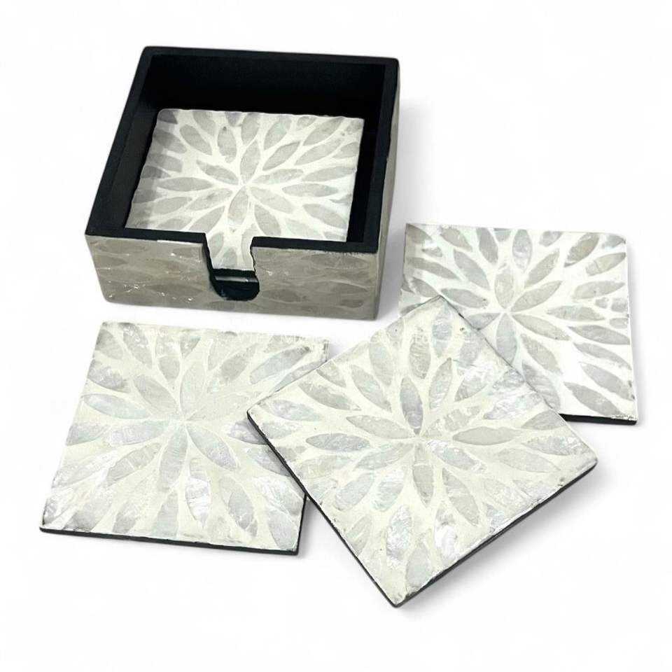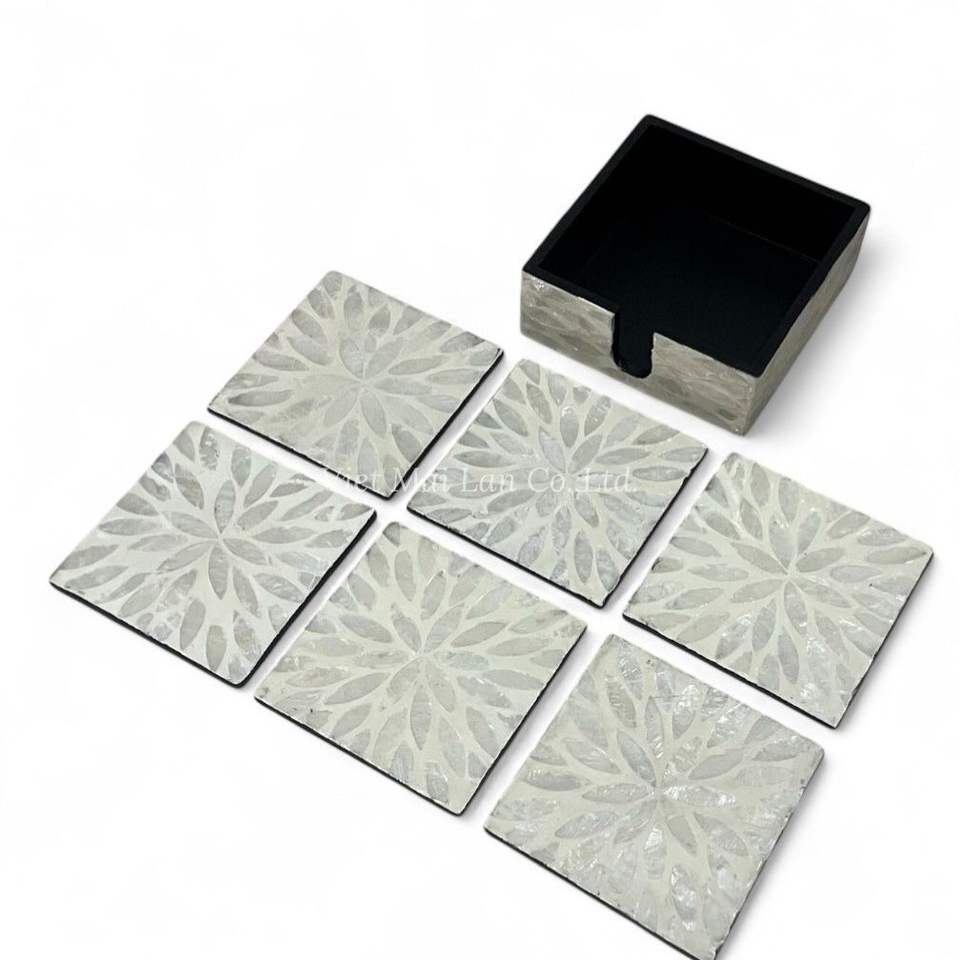 ชุดจานรองแก้วสไตล์โบฮีเมียนสุดหรู ทำจากเปลือกหอยมุก พร้อมกล่องเก็บของ ผลิตจากเวียดนาม เหมาะสำหรับจานรองแก้วและการตกแต่งภายใน