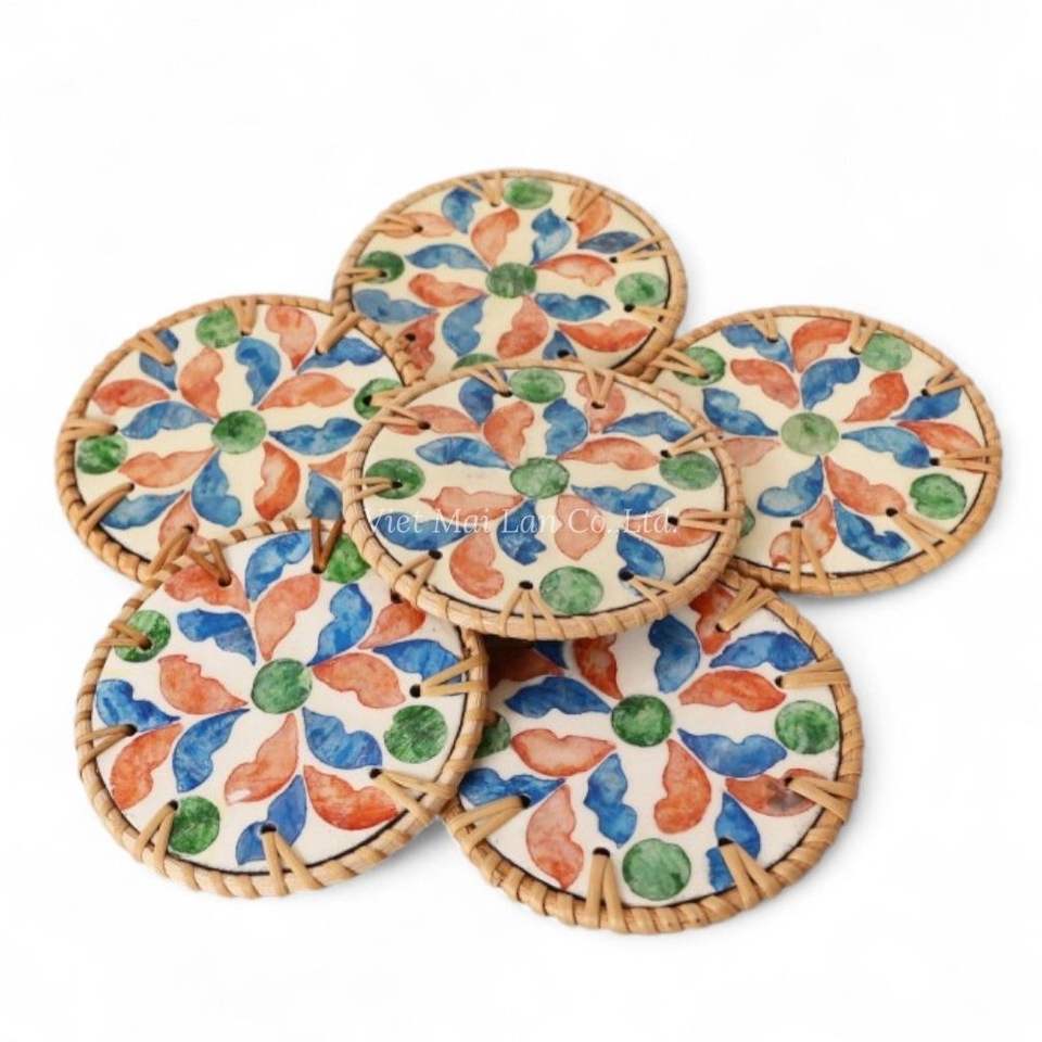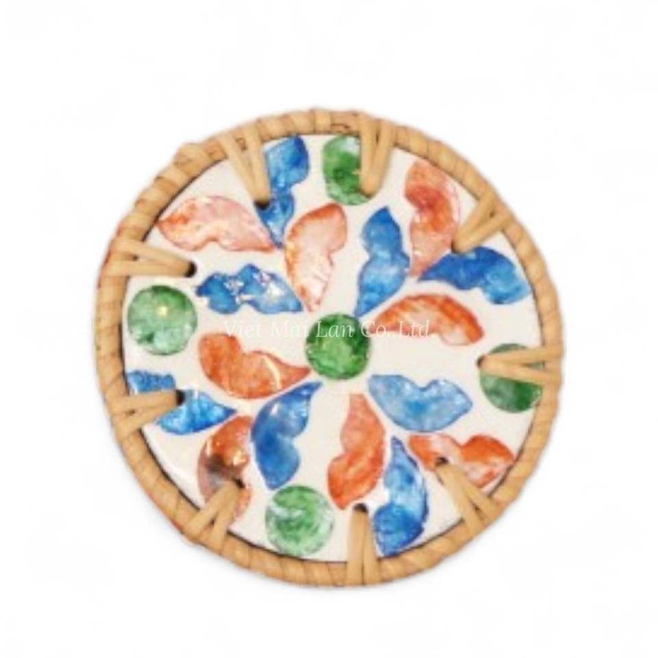 แผ่นรองแก้วมุกหรูหราขอบหวายธรรมชาติ ทำด้วยมือสำหรับตกแต่งโต๊ะที่บ้าน