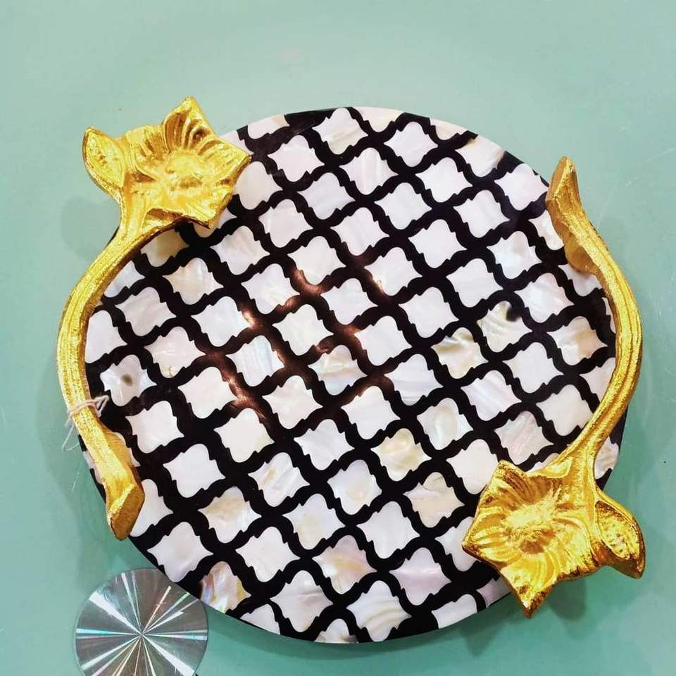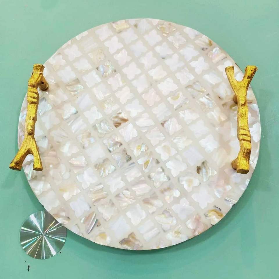 ถาดตกแต่งหรูหราจากเปลือกหอยมุกสำหรับตกแต่งบ้านและโต๊ะ