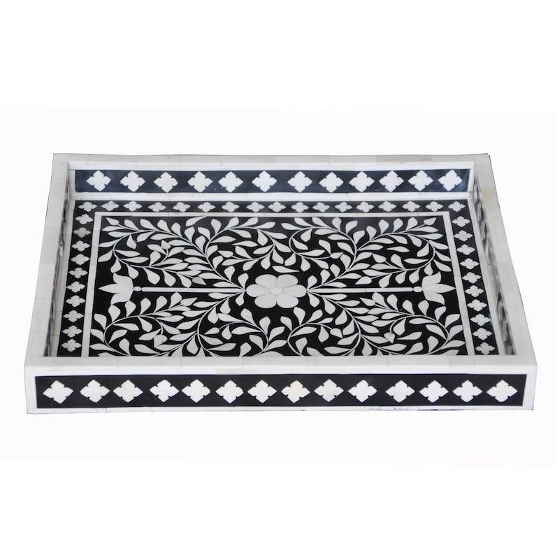 ถาดตกแต่งแบบฝังมุกหรูหราถาดฝังกระดูกจากอินเดียสำหรับห้องนั่งเล่นของตกแต่งบ้านขายส่ง