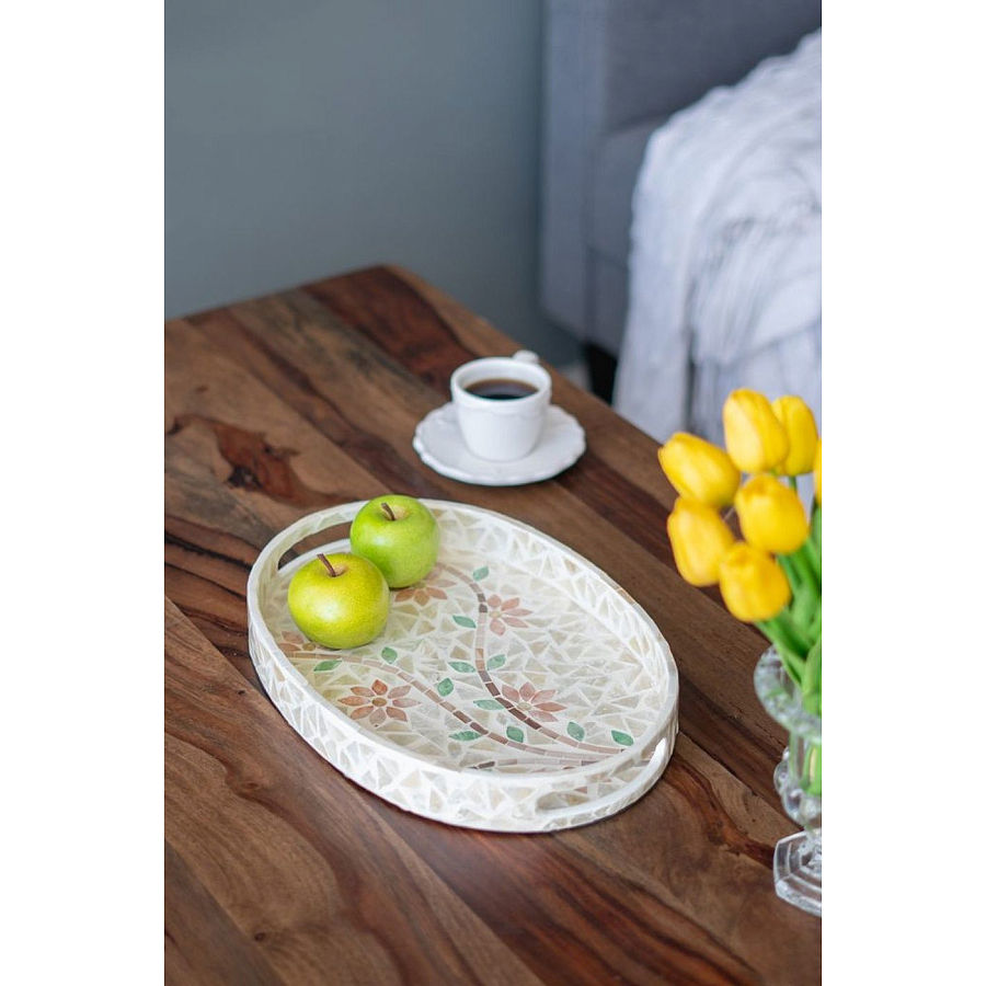 ถาดฝังมุกแม่ของทำมือถาดเสิร์ฟเปลือกหอยสำหรับตกแต่งบ้านและของขวัญ