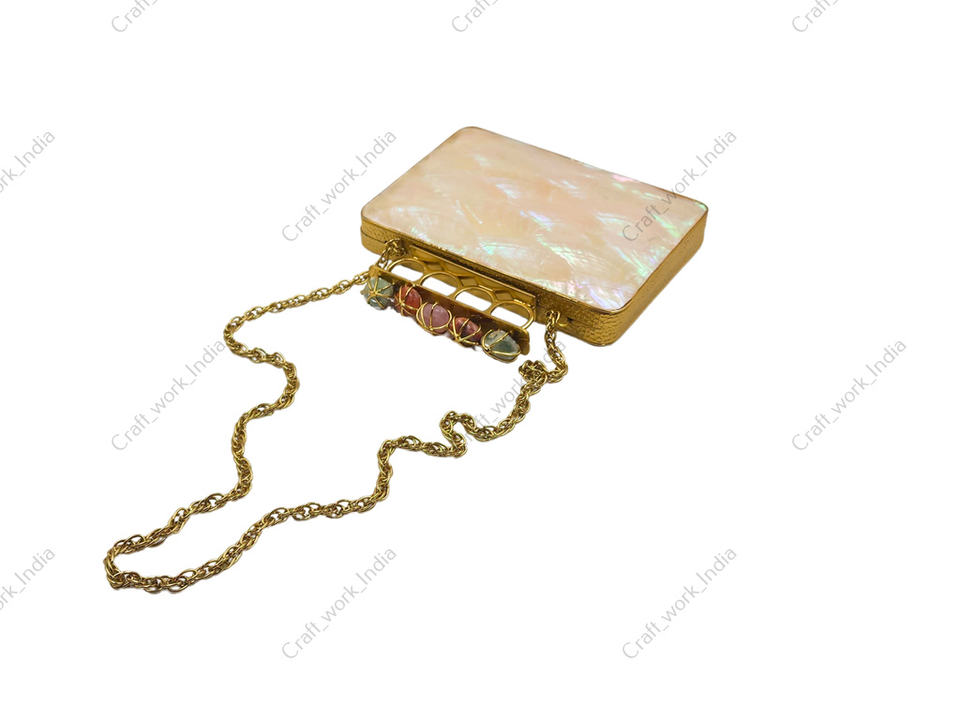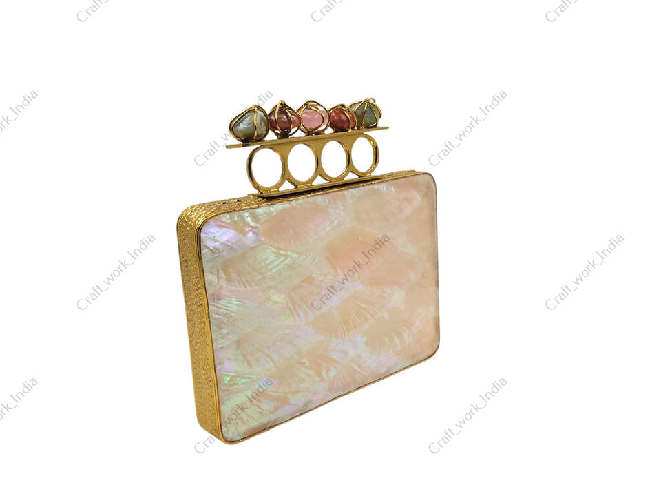 กระเป๋าคลัทช์ทรงวงรีประดับมุกหรูหรา พร้อมห่วงจับแหวนประดับอัญมณี โครงทองเหลืองทำมือ สำหรับงานเลี้ยงตอนเย็นสำหรับผู้หญิง