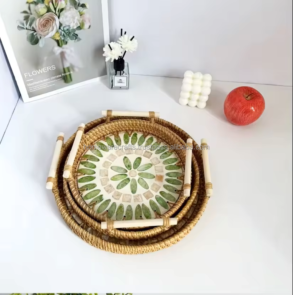 ถาดมุกหรูหรา ทำมือ เป็นมิตรกับสิ่งแวดล้อม ขนาดสั่งทำได้ ปลอดภัยสำหรับสัมผัสอาหาร ทนทาน คุณภาพระดับพาณิชย์ ถาดตกแต่งสำหรับใช้ในบ้าน