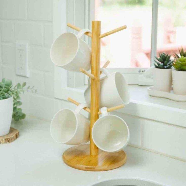 การออกแบบอเนกประสงค์:ที่แขวนแก้วแบบต้นไม้พร้อมตะขอหลายจุดสำหรับแขวนแก้ว