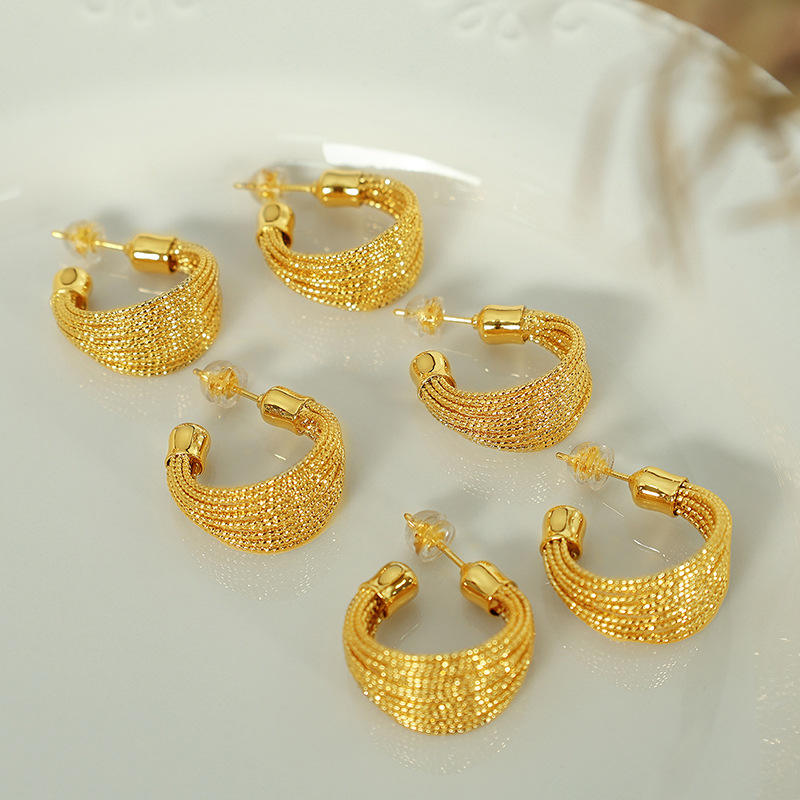 ชุดต่างหูห่วงทองหลายชั้นสุดหรูสำหรับผู้หญิง เครื่องประดับสำหรับงานปาร์ตี้ ดีไซน์วงกลม ไม่สามารถปรับขนาดได้