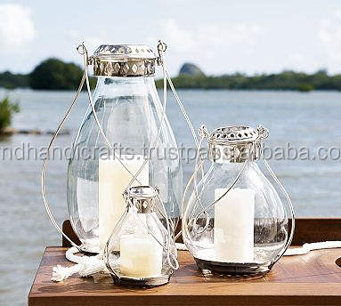 โคมไฟแขวนหลากสีสุดหรูโถเทียนทำจากแก้วและเหล็กเคลือบผิวด้านสำหรับตกแต่งคริสต์มาสในงานแต่งงาน