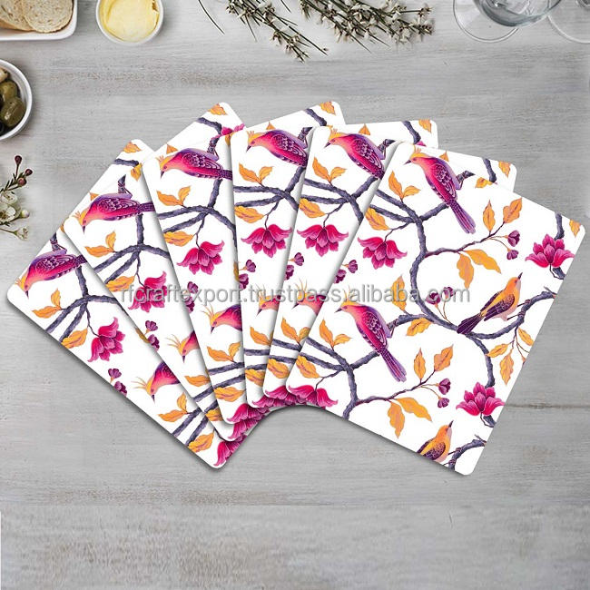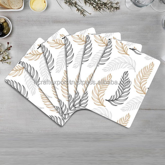 เสื่อหวายไม้ MDF หลากสีสุดหรูเสื่อปูโต๊ะรับประทานอาหารไม้ทนความร้อนแผ่นรองจานออกแบบลายพิมพ์ลายสำหรับห้องครัวสไตล์เกาหลีใช้รับประทานอาหารงานแต่งงาน