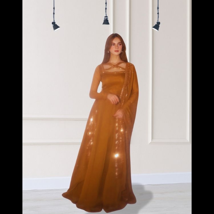 ชื่อผลิตภัณฑ์:ชุดราตรีผ้าตาข่ายสีมัสตาร์ดสีทองสุดหรู