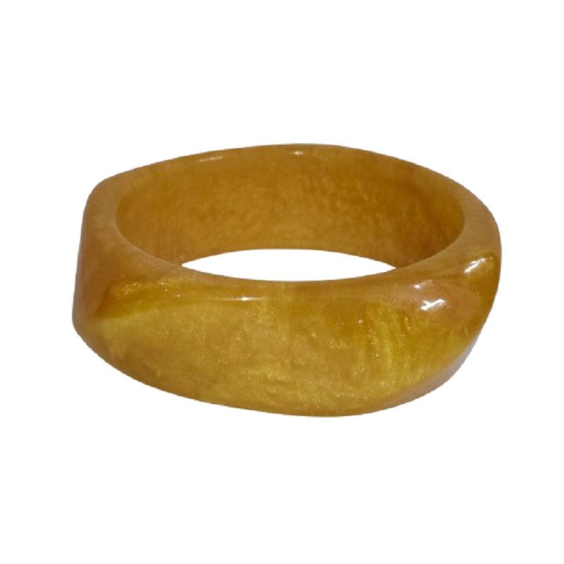 กำไลเรซิ่นลายหินอ่อนสีเหลืองมัสตาร์ดสุดหรู ดีไซน์เรขาคณิตโค้งมนโดดเด่น เครื่องประดับทันสมัยสุดชิค